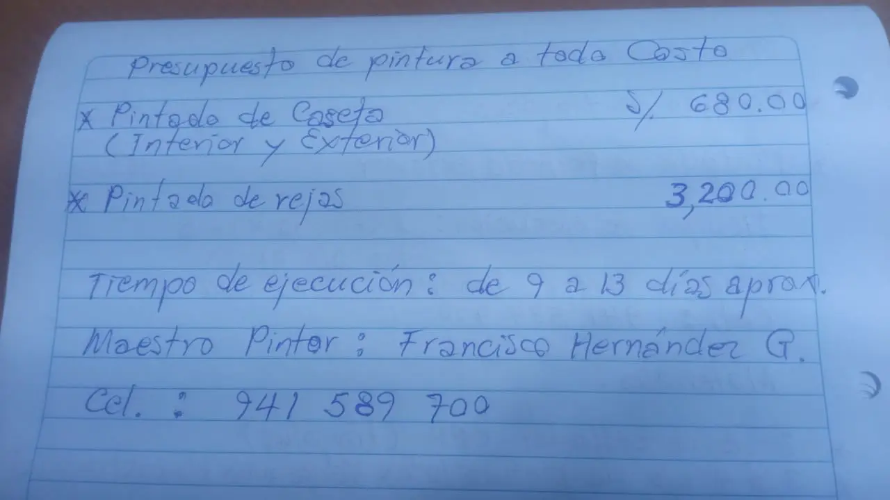 | Eliceo Quispe | S/ 1,800.00 | S/ 350.00 | S/ 2,150.00 | Vea la propuesta formal aquí. |